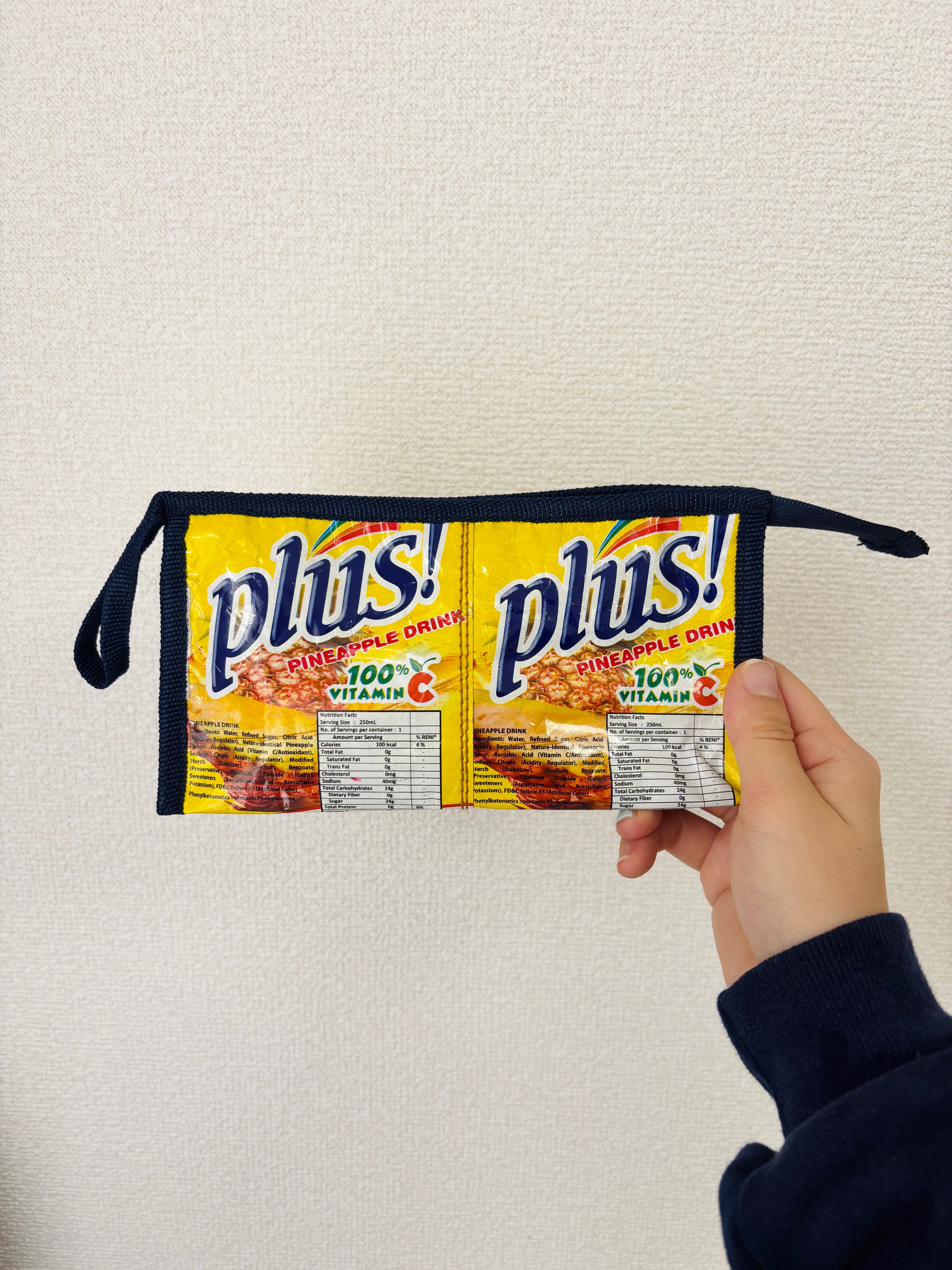 こちらのペンケースは、フィリピンの女性職人たちが使い終わったジュースパックを丁寧に縫い合わせて作りました。カラフルで元気になれるデザインが特徴です!